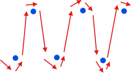 Zet de pionnen niet op een rijtje maar afwisselend links of rechts op de baan.
